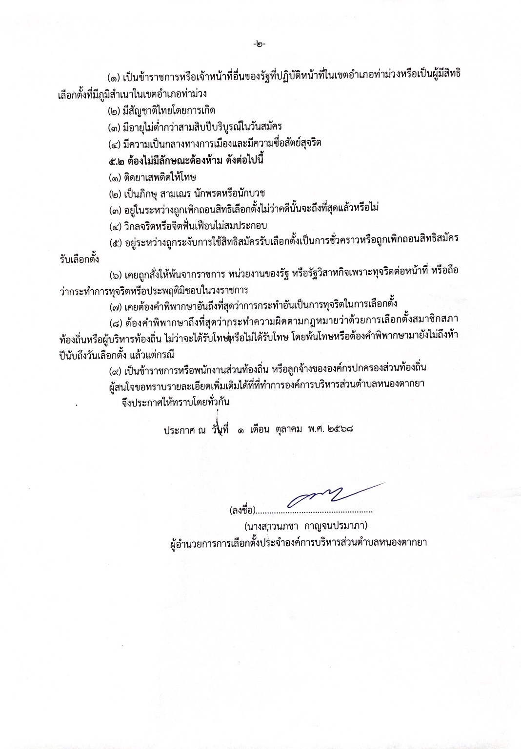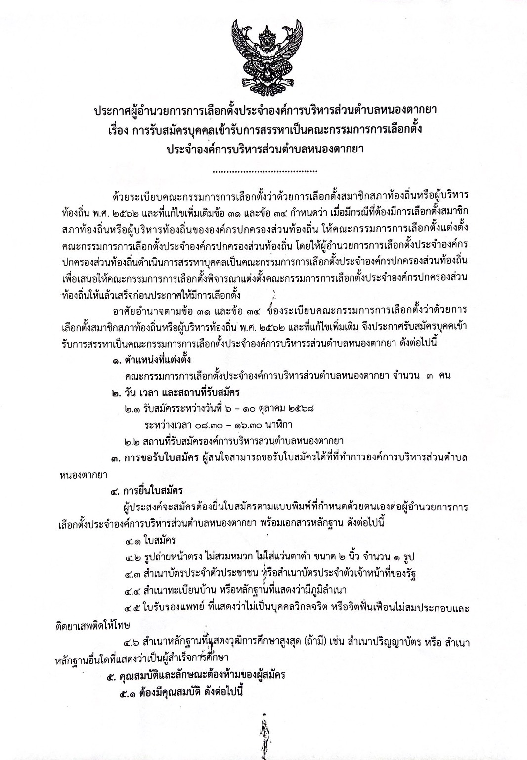 ประกาศ เรื่อง การรับสมัครบุคคลเข้ารับการสรรหาเป็นคณะกรรมการการเลือกตั้ง ประจำองค์การบริหารส่วนตำบลหนองตากยา