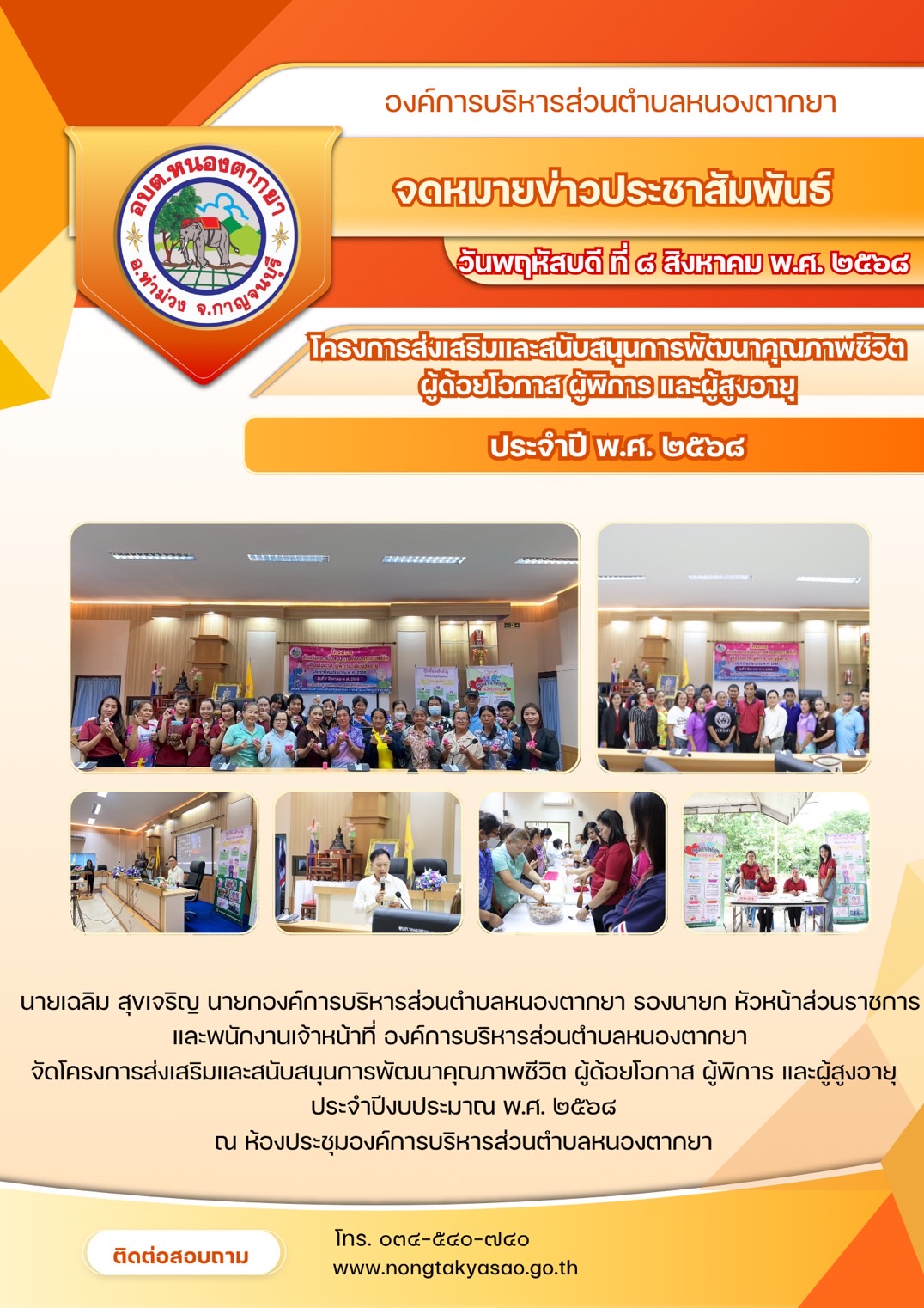 จดหมายข่าวประชาสัมพันธ์ เรื่อง โครงการส่งเสริมและสนับสนุนการพัฒนาคุณภาพชีวิต ผู้ด้อยโอกาส ผู้พิการ และผู้สูงอายุ ประจำปี พ.ศ. 2568