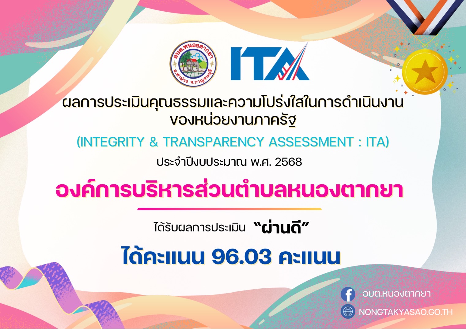 ประชาสัมพันธ์ ผลคะแนนการประเมินคุณธรรมและความโปร่งใสในการดำเนินงานของหน่วยงานภาครัฐ (ITA) ประจำปีงบประมาณ พ.ศ. 2568